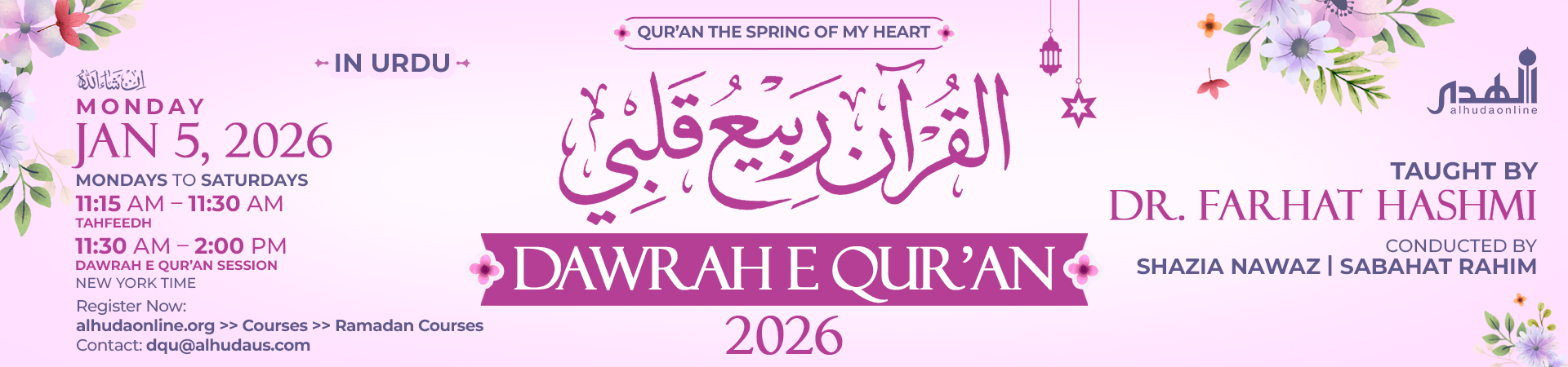 Course image Dawrah e Qur’an 2026 القرآن ربیع قلبی Live By Dr. Farhat Hashmi | In Urdu | DQU26